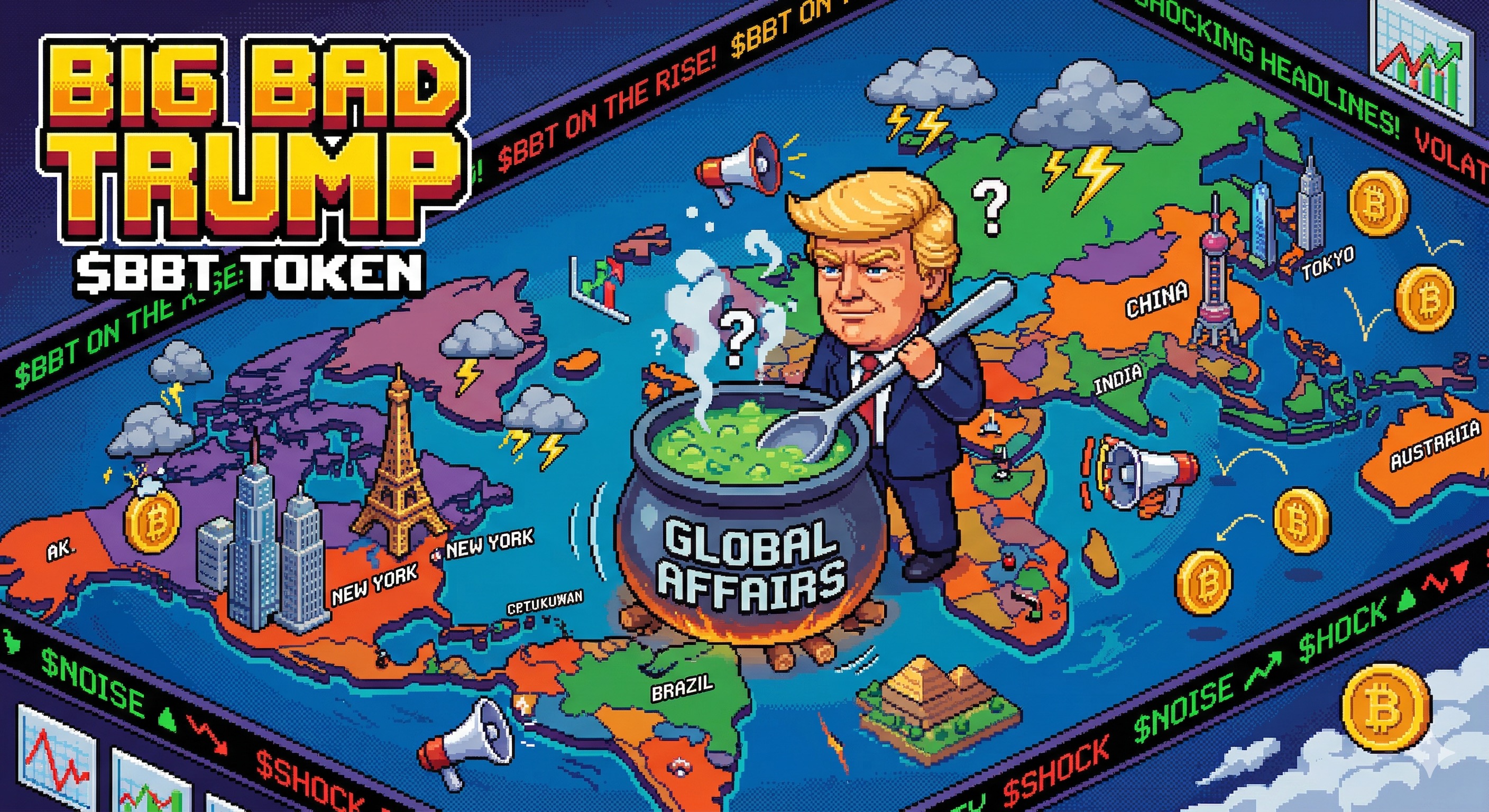 $BBT is the token for the ‘Big Bad Trump’ narrative, capturing the raw energy of a disruptive global force. Whether it's shocking headlines, aggressive foreign policy moves, or simply stirring the pot—this token embodies the sheer unpredictability of a world-shaking figure.